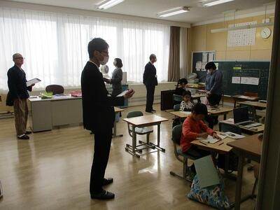 本日、猿払村の教育委員の皆様による学校訪問がありました。授業、学校の様子を見ていただき、意見交流を行いました。教育委員の皆様から「オンライン学習が充実している」「授業が楽しい雰囲気で展開されている」とご評価をいただきました。