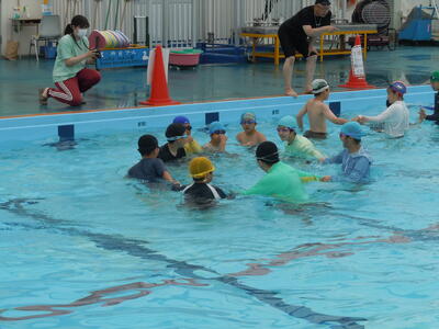 天候が悪く実施できるか心配しましたが,プールは大丈夫!ということで,