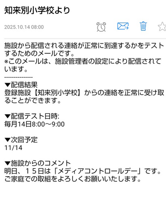 前日(毎月14日)にマチコミにて配信テストと併せてメディアコントロールの呼びかけを行っています。