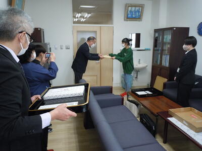今日はその表彰式を校長室で行いました。