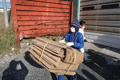 本日20日(木),晴天のもと廃品回収を実施しました。肌寒い中でしたが,子どもたちは一生懸命作業を行っていました。