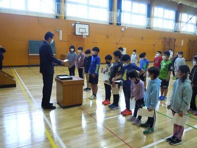 今日は朝会があり,その中でマラソン大会の表彰が行われました。