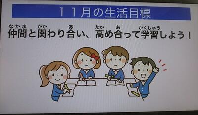 11月の生活目標です。11月は学習、読書に力を入れて過ごします。