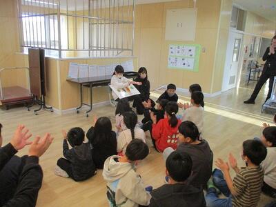 本日、図書委員会を中心に取り組んできた「読書に親しもう月間」最終日です。大型絵本の読み聞かせも4回目。図書委員のみんな、上手に読み聞かせをしてくれました👏読書の木に葉も生い茂っています。読書に親しもう月間は終了しますが、12月3日の参観懇談会では、親子で読書に親しむ学習会を企画しています。これからも楽しく読書を続けましょう♪