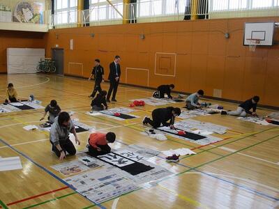 1月16日 書き初め 投稿: 教頭 (13:39) 3~6年生が5・6時間目、体育館に集まって「書き初め」を行っています。 3年生は「元日」、4年生は「文化」、5年生は「風車」、6年生は「太陽」です。 本日、仕上げた力作は、1月27日(火)~2月16日(月)役場ロビーで展示されます。 ぜひ、期間中にご覧いただきたいと思います。 Tweet -