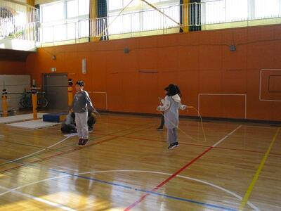 これまでの連続前回し跳びから、「駆け足跳び」や「あや跳び」、「後ろ回し跳び」に挑戦しています。