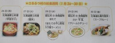 1月24日~30日は、「全国学校給食週間」です。猿払村でも1月26日~30日が「さるふつ村の給食週間」と設定され、北海道の郷土料理や猿払村の地場産物を使用した給食が提供されています。今日は、猿払村のさけ・牛乳を使用した「とっても美味しいクリームシチュー」でした。一気に食べてしまって写真を撮り忘れてしまいました。ごめんなさい!