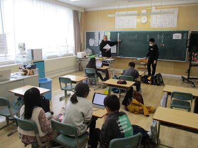 1・2年生のスキー授業です。天候にも恵まれ、楽しい時間となりました。前回まで、「リフトがこわい・・・」とおびえていた1年生も全員、自信満々でリフトに乗って、山頂から上手に滑ることができました。スキー授業に加えて、ご家庭でも練習の時間をとってくださった成果と感じております。2年生もスイスイと様々なコースを滑走しました。1・2年生の上達に驚くばかりです。