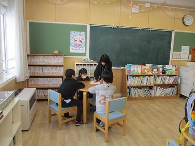 4月に入学する元気いっぱいの子どもたちに、1・2年生もはりきってお迎えしました。