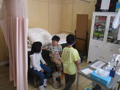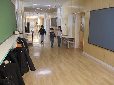2年生が1年生をエスコート。学校探検の様子です。2年生がグループ決めや順番、説明を考えて案内してくれました。1年生も興味津々です。